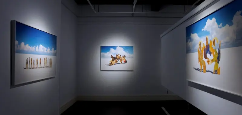 本次展覽的壓軸系列《碎片》(2023) 則與以往作品大相徑庭。在玻利維亞的烏尤尼鹽湖創作完成的這組作品,探討了技術與科學進步如何改變我們對影像內容的感知。藝術家使用厚度2.5公分的泡沫板,拼貼數位時代之前的繪畫複製品,構成一系列裝置作品。在歷史上,繪畫曾經是通向現實與世界的一扇窗,但隨著影像複製技術的創新,其原有角色逐漸式微。