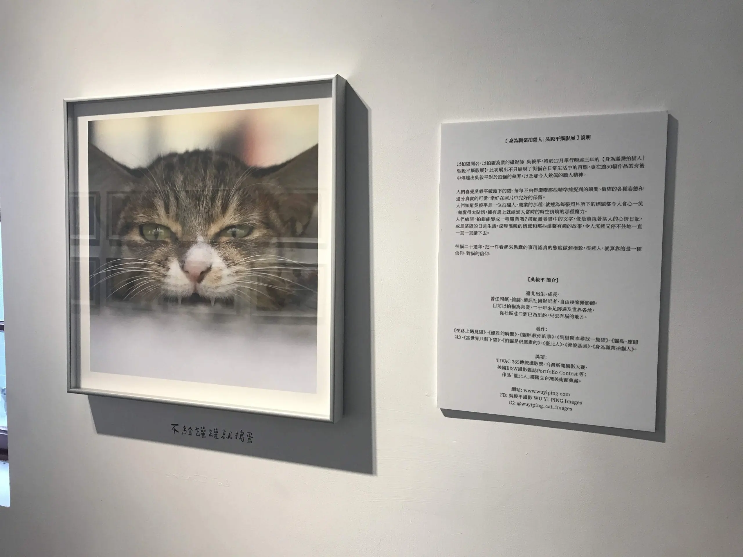人們知道吳毅平是一位拍貓人,職業的那種,就連為每張照片所下的標題都令人會心一笑,總覺得太貼切,擁有馬上就能進入當時的時空情境的那種魔力。