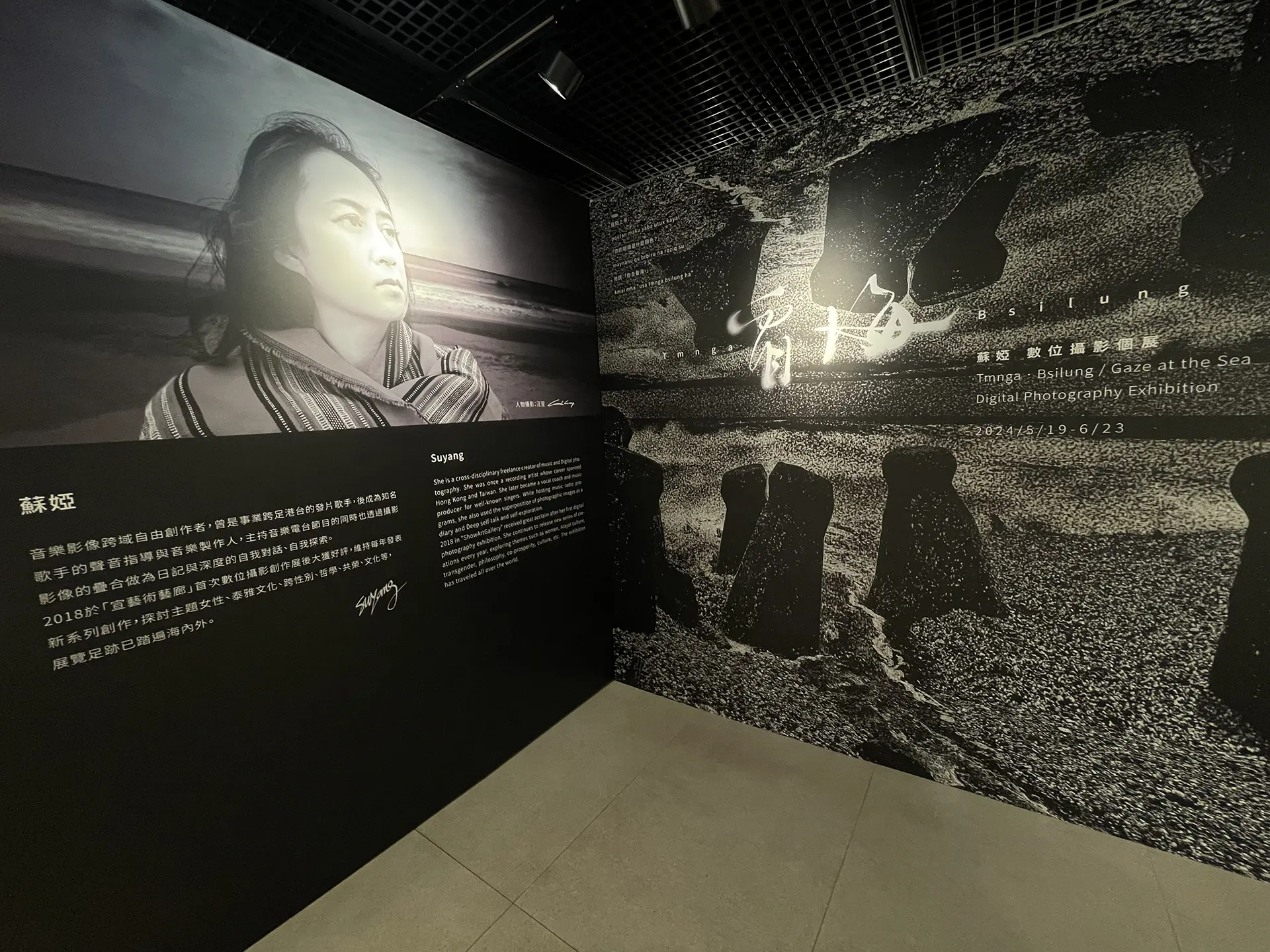 展覽「Tmnga•Bsilung / 看·海」以清澈的「純淨海」開啟,象徵起點透亮的盼望,沒有框架的想像邁向未知,呼應冒險的啟程;接續「浪漫海」記錄了蘇婭遊歷世界中所見之海,鮮豔的視覺象徵躍動的成長,前行中滿載情感與體驗的收穫;而「海與人」則是成熟後的沉澱,思維的反芻,透過人與海的影像陳述洗鍊後的自我。